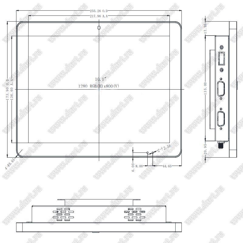 Монитор TFT 10,1-дюймовый с разрешением 1280x800 IPS HDMI/VGA-интерфейсом и емкостной сенсорной панелью; 10,1 inchдюйм; Количество цветов 16,7M; габариты 255,26x173,90x41,80мм