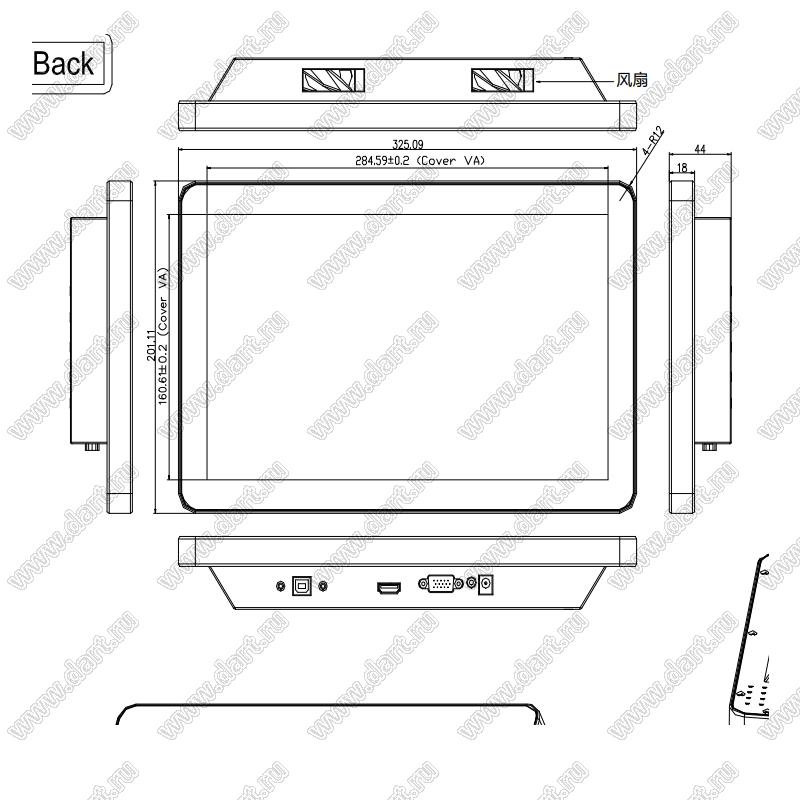 Монитор TFT 12,8-дюймовый полноцветный FHD 1920x1080 с диагональю экрана 16,7 М поддерживает интерфейсные порты VGA / HDMI для Android / Linux / Raspberry; 12,8 inchдюйм; Количество цветов 16,7M; габариты 325,09x201,11x44,00мм