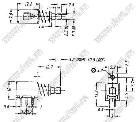 Каталог > Электронные компоненты, радиодетали > Переключатели, кнопки > Переключатели кнопочные (PUSH, кнопки) > PS серия > PS-22 (2P2T) > PS-22F05L