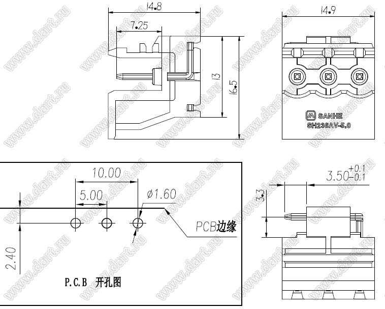 Каталог > Электронные компоненты, радиодетали > Клеммники (колодки клеммные) > Клеммники разъемные > Разъемные клеммники шаг 5,0 мм > SH236AV-5 0 серия > SH236AV-5 0-3P-Y-GRAY