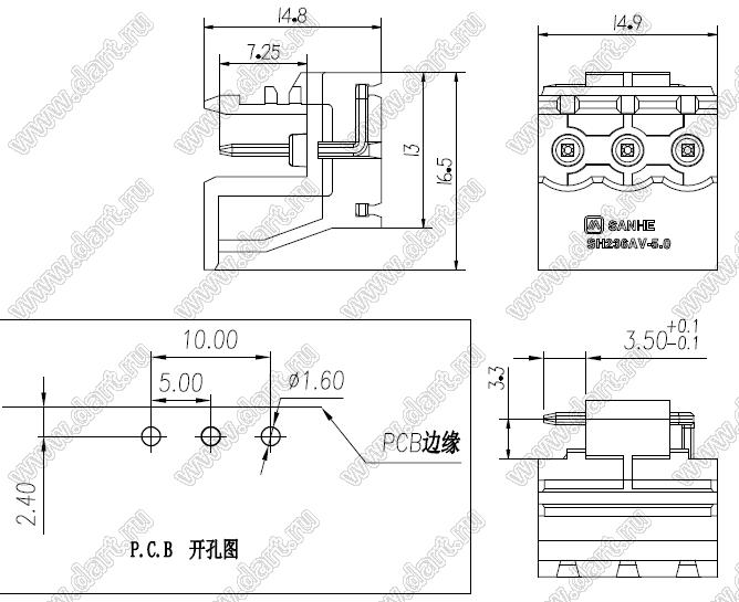 Каталог > Электронные компоненты, радиодетали > Клеммники (колодки клеммные) > Клеммники разъемные > Разъемные клеммники шаг 5,0 мм > SH236AV-5 0 серия > SH236AV-5 0-3P-Z-GRAY