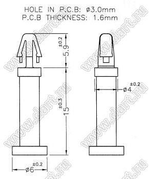 Каталог > Фурнитура для электронных устройств > Фиксаторы плат, стойки межплатные > Фиксаторы под круглое отверстие > Фиксаторы с защелкой в плату > DCB серия > DCB-15S