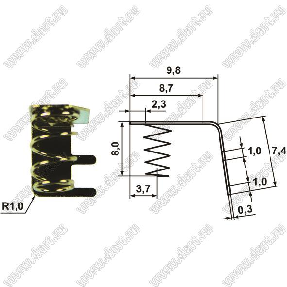 Каталог > Фурнитура для электронных устройств > Держатели аккумуляторов и батареек > Терминалы для "пальчиковых" элементов питания > T-AAAA серия - терминалы (контакты) для элементов питания типоразмера AAAA > BL147-2R