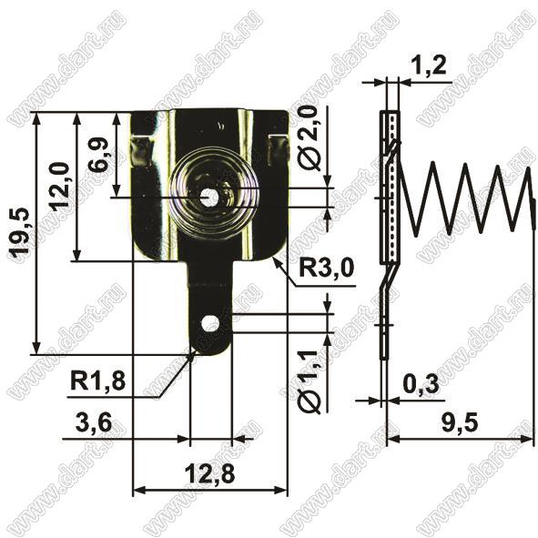 Каталог > Фурнитура для электронных устройств > Держатели аккумуляторов и батареек > Терминалы для "пальчиковых" элементов питания > T-AA серия - терминалы (контакты) для элементов питания типоразмера AA > BL302-2