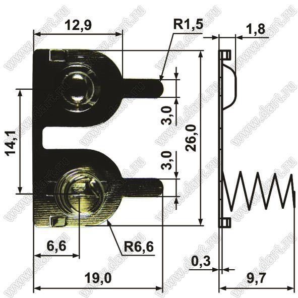 Каталог > Фурнитура для электронных устройств > Держатели аккумуляторов и батареек > Терминалы для "пальчиковых" элементов питания > T-AA серия - терминалы (контакты) для элементов питания типоразмера AA > BL443-1-12