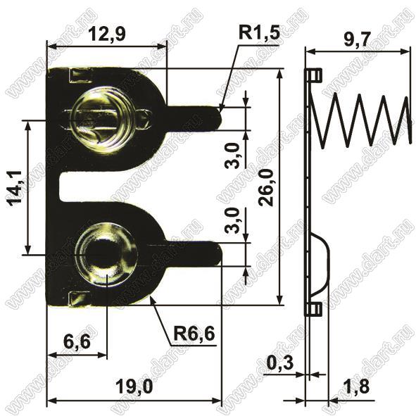 Каталог > Фурнитура для электронных устройств > Держатели аккумуляторов и батареек > Терминалы для "пальчиковых" элементов питания > T-AA серия - терминалы (контакты) для элементов питания типоразмера AA > BL443-2-12