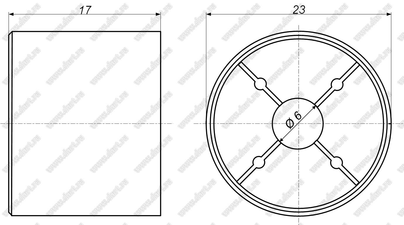 Каталог > Фурнитура для электронных устройств > Ручки приборные регулировочные > Ручки настройки > Ручки регулировочные металлические > B145 серия > B145-23-17-6-B-SR2 (IB 23x17)