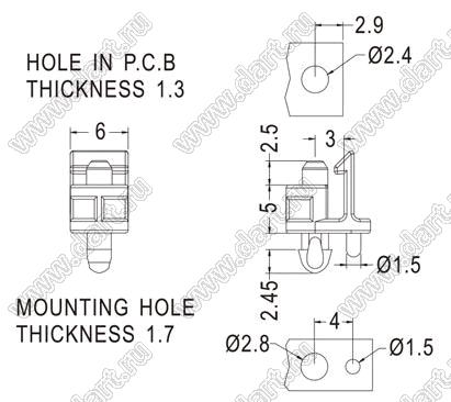 Каталог > Фурнитура для электронных устройств > Фиксаторы плат, стойки межплатные > Фиксаторы под круглое отверстие > Фиксаторы с защелкой в плату > Прочие > ULCSD-5