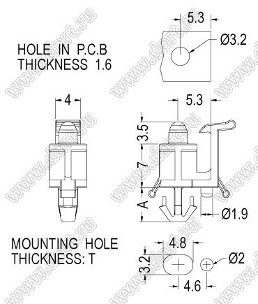 Каталог > Фурнитура для электронных устройств > Фиксаторы плат, стойки межплатные > Фиксаторы под круглое отверстие > Фиксаторы с защелкой в плату > ULCSE-7 серия > ULCSE-7L
