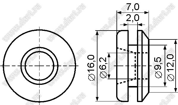 Втулка проходная под кабель; C=6,2мм; резина; цвет черный