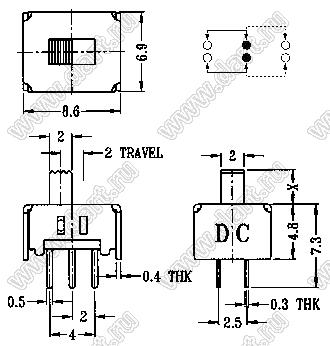 Каталог > Электронные компоненты, радиодетали > Переключатели, кнопки > Переключатели движковые (SLIDE) > Переключатели движковые (SLIDE) прямые > SS-22D12-G4 (SS-22D07-G4)