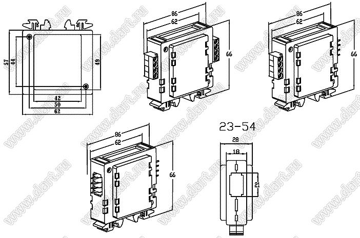 Каталог > Корпусные и установочные изделия > Корпуса для РЭА > Корпуса на DIN-рейку (стандартный электрический рельс) (Case 23-хх) > Case 23-54