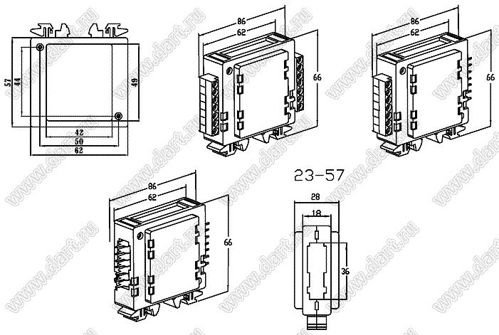 Каталог > Корпусные и установочные изделия > Корпуса для РЭА > Корпуса на DIN-рейку (стандартный электрический рельс) (Case 23-хх) > Case 23-57