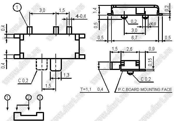 Каталог > Электронные компоненты, радиодетали > Переключатели, кнопки > Переключатели движковые (SLIDE) > Миниатюрные > MSK-12C02 (IS-1290A, CUS-12B)
