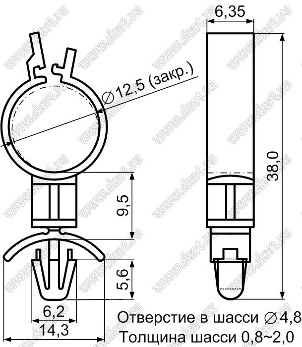 Каталог > Фурнитура для электронных устройств > Крепеж проводов и кабелей > Зажимы проводов с фиксацией в панель на защелках > SLC серия > SLC-19