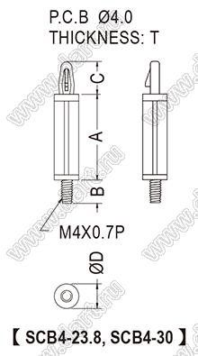 Каталог > Фурнитура для электронных устройств > Фиксаторы плат, стойки межплатные > Фиксаторы под круглое отверстие > Фиксаторы с защелкой в плату > SCB серия > SCB4-23.8
