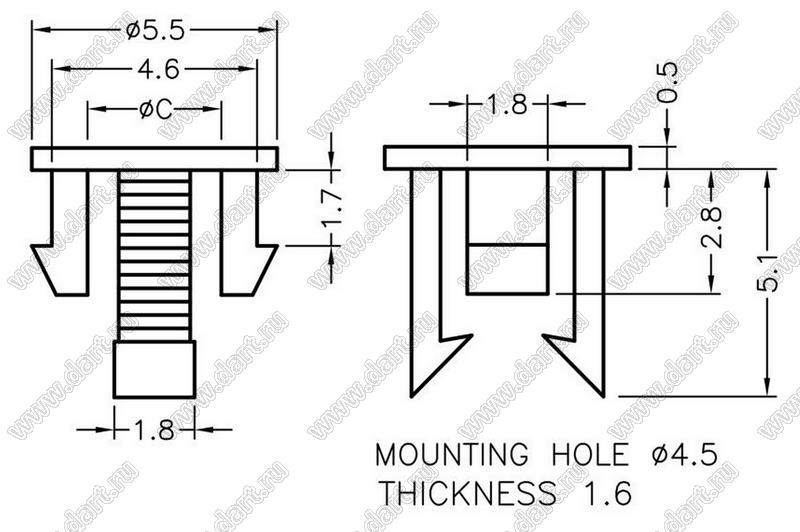 Каталог > Фурнитура для электронных устройств > Держатели и изоляторы компонентов > Держатели светодиодов > Держатели светодиодов на панель > LED3 серия > LED3-7