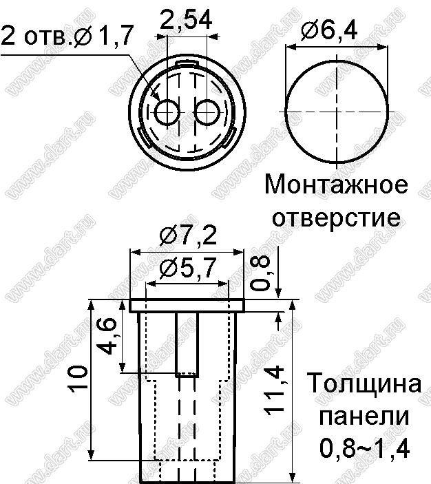 Диаметр светодиода C: 5,7 мм