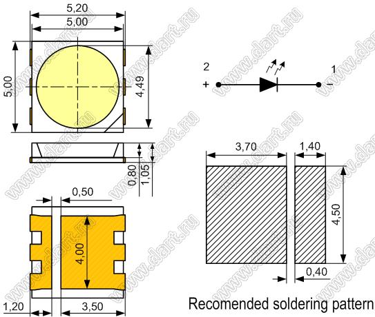 Каталог > Оптоэлектроника и индикация > Светодиоды и изделия на светодиодах > ЧИП светодиоды для поверхностного (SMD) монтажа на плату > ЧИП светодиоды SMD в корпусе LED5050 (5,0x5,0мм) > 5050FW-S1-HR1-4000