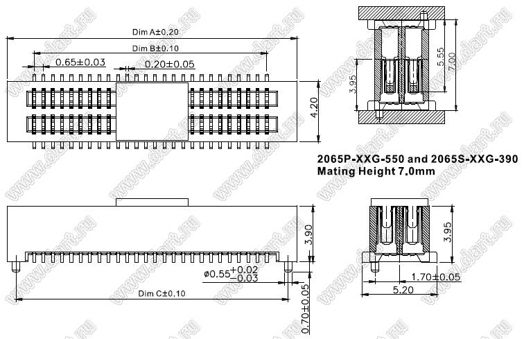 Каталог > Электронные компоненты, радиодетали > Разъёмы (соединители, переходники) > Разъемы плата-плата (межплатные) > Шаг 0,60...0,65 мм > 2065S > 2065S-40G-390