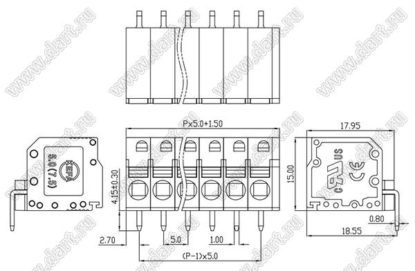 Каталог > Электронные компоненты, радиодетали > Клеммники (колодки клеммные) > Клеммники нажимные безвинтовые для монтажа в отверстия печатных плат > Клеммники нажимные безвинтовые (шаг 5,0 мм) > KF450R-5.0 серия > KF450R-5.0-01P-17