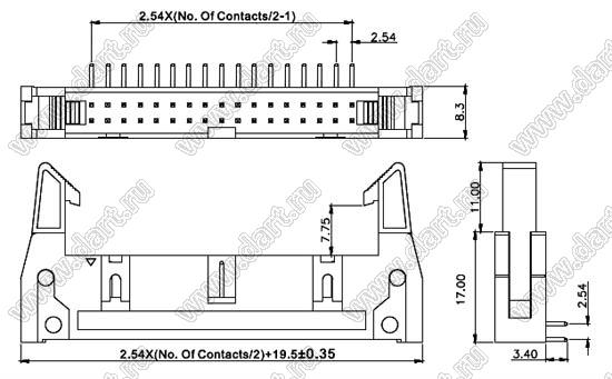 Каталог > Электронные компоненты, радиодетали > Разъёмы (соединители, переходники) > Разъемы IDC для плоского кабеля (шлейфа) > 2,54 x 2,54 > 2216R-XXG-02 (SCM-XXR-02, DS1011-XXR-02, IDCC-XXMR-02) серия > 2216R-16-02 (SCM-16R-02, DS1011-16R-02, IDCC-16MR-02)