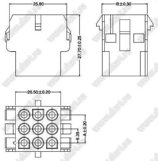 Каталог > Электронные компоненты, радиодетали > Разъёмы (соединители, переходники) > Разъемы кабель-плата > Шаг 6,35 мм 63080 MATE-N-LOCK серия > 63080-3x03R