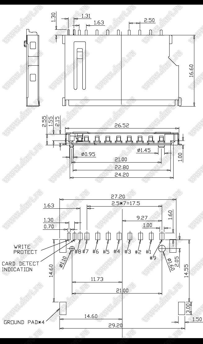 Каталог > Электронные компоненты, радиодетали > Разъёмы (соединители, переходники) > Держатели SIM карт и карт памяти > Держатели SD карт > SD-02 (SDC009-A0-0003,SDS630)