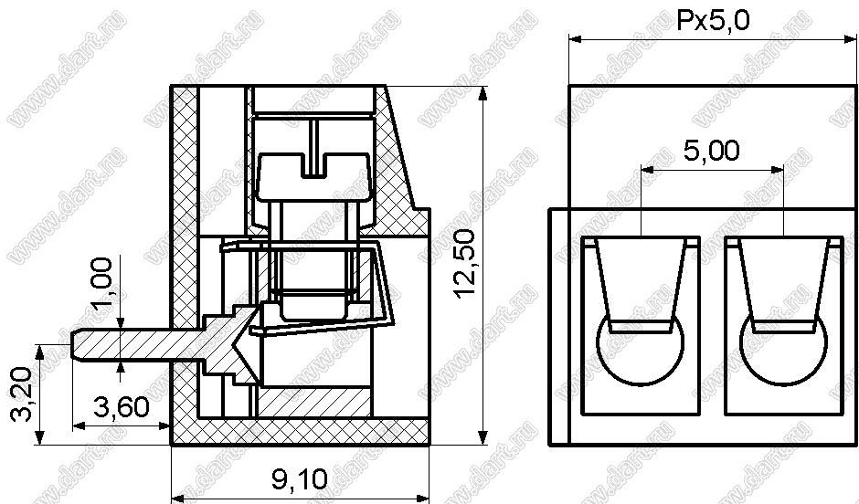 Каталог > Электронные компоненты, радиодетали > Клеммники (колодки клеммные) > Клеммники винтовые для монтажа в отверстия печатных плат > Винтовые клеммники (шаг 5,0 мм) > KF300R-5.0 (DG300R-5.0) серия > KF300R-5.0-03P-12