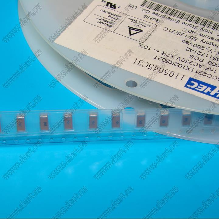 Каталог > Электронные компоненты, радиодетали > Конденсаторы > CERCAP - конденсаторы керамические SMD > CC2211 > CERCAP 1000pF/250V X7R 2220 10% X1Y2 (SCC2211X102K502T)
