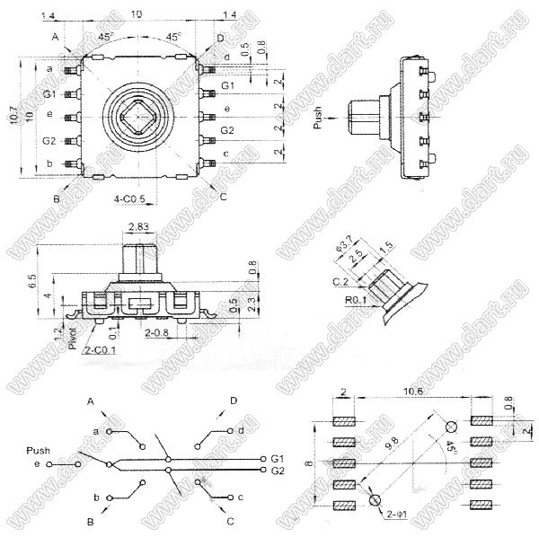 кнопка тактовая 10,0x10,7мм четырехнаправленная с центральным нажатием ("микроджойстик") для поверхностного монтажа
