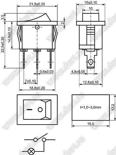 Каталог > Электронные компоненты, радиодетали > Переключатели, кнопки > Переключатели клавишные (ROCKER) > KCD1 серия > KCD1-B серия > KCD1-B-101N12RB