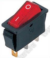 Переключатель клавишный ON-OFF; 31,0х13,5мм; 15A/30A 250VAC; толкатель красный/корпус черный; с подсветкой; маркировка "O I"; терминалы 4,8x0,8мм