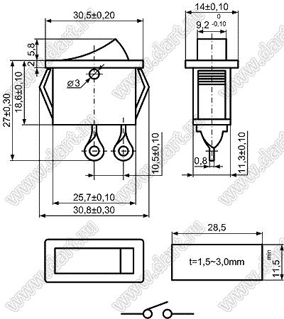 Каталог > Электронные компоненты, радиодетали > Переключатели, кнопки > Переключатели клавишные (ROCKER) > KCD3 серия > KCD3-C3-101O81CRG