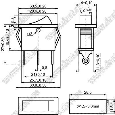 Каталог > Электронные компоненты, радиодетали > Переключатели, кнопки > Переключатели клавишные (ROCKER) > KCD3 серия > KCD3-C3-102O81CRG