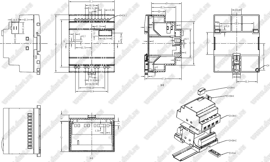 Каталог > Корпусные и установочные изделия > Корпуса для РЭА > Корпуса на DIN-рейку (стандартный электрический рельс) (Case 23-хх) > Case 23-104