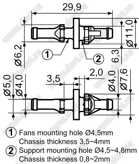 Каталог > Фурнитура для электронных устройств > Амортизаторы > Монтажные амортизаторы для вентиляторов > Монтажные амортизаторы для вентиляторов: группа-11 > BUB-29