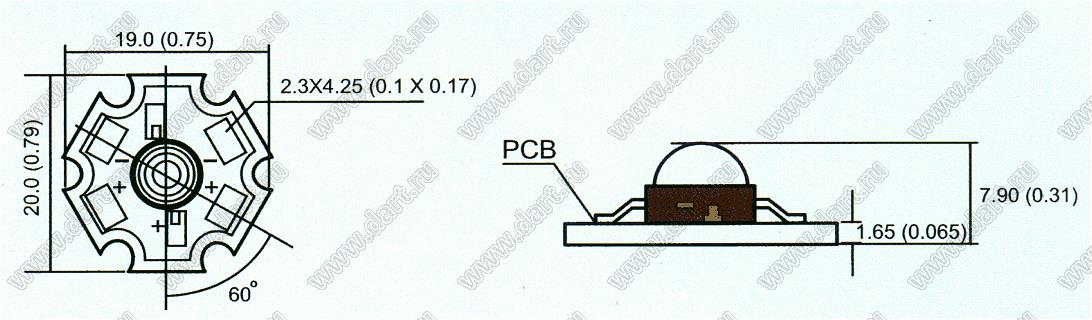 Каталог > Оптоэлектроника и индикация > Светодиоды и изделия на светодиодах > Мощные светодиоды для монтажа на радиатор > Мощные 5W светодиоды "Эмиттеры" на платах "Звездочка" > LB-P200R1C-H5