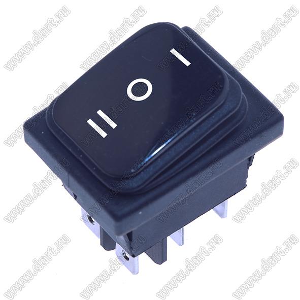 переключатель клавишный ON-OFF-(ON) с пылевлагозащитой, черный корпус / черная клавиша, маркировка "I O II", терминалы 6,35 мм