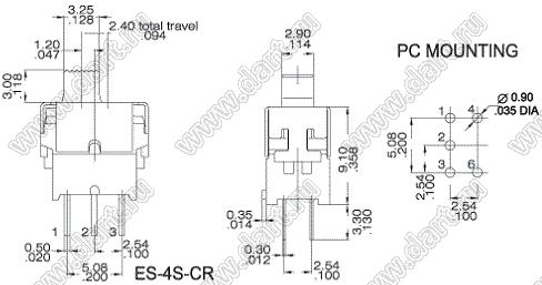 Каталог > Электронные компоненты, радиодетали > Переключатели, кнопки > Переключатели движковые (SLIDE) > Миниатюрные герметичные движковые переключатели > ES-5AS-CR-H (DPDT)