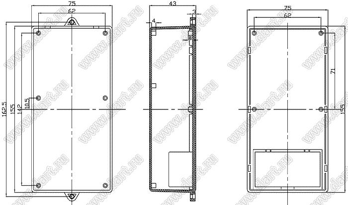 Каталог > Корпусные и установочные изделия > Корпуса для РЭА > Настенные корпуса (Case 19-хх) > Case 19-30D