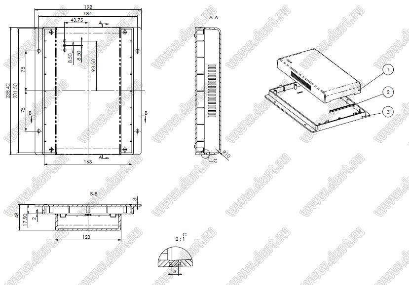 Каталог > Корпусные и установочные изделия > Корпуса для РЭА > Корпуса на DIN-рейку (стандартный электрический рельс) (Case 23-хх) > Case 23-108