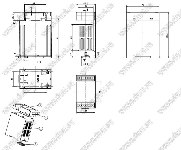 Каталог > Корпусные и установочные изделия > Корпуса для РЭА > Корпуса на DIN-рейку (стандартный электрический рельс) (Case 23-хх) > Case 23-109B
