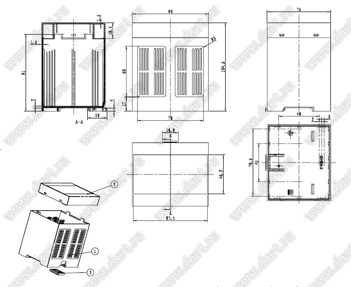 Каталог > Корпусные и установочные изделия > Корпуса для РЭА > Корпуса на DIN-рейку (стандартный электрический рельс) (Case 23-хх) > Case 23-110C