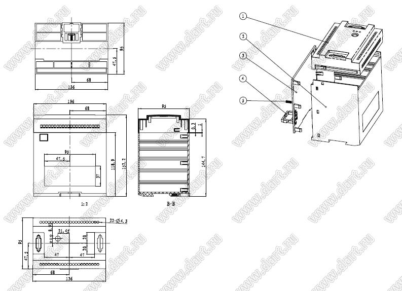 Каталог > Корпусные и установочные изделия > Корпуса для РЭА > Корпуса на DIN-рейку (стандартный электрический рельс) (Case 23-хх) > Case 23-113