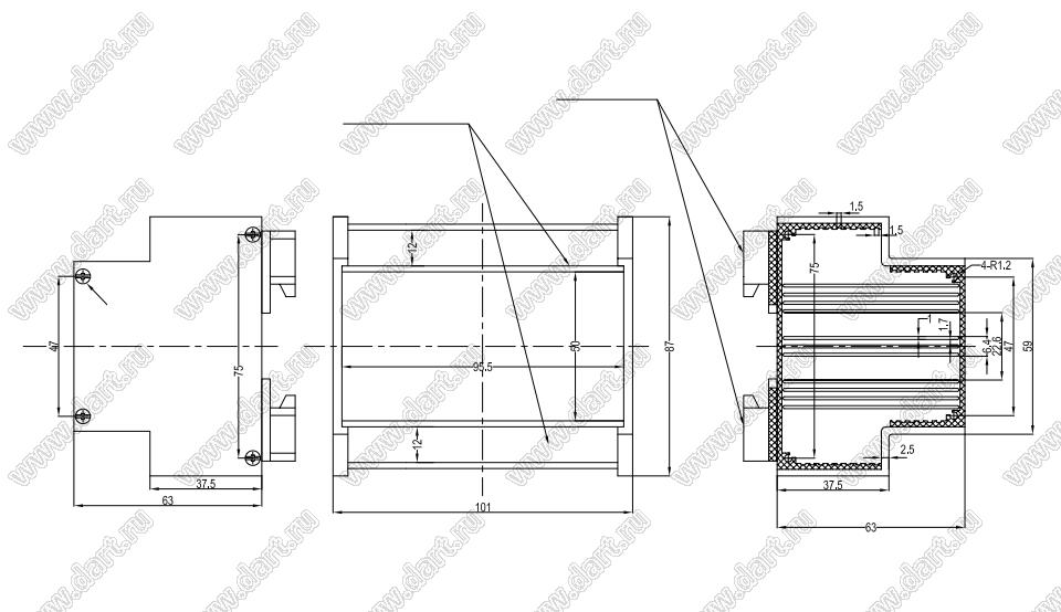 Каталог > Корпусные и установочные изделия > Корпуса для РЭА > Корпуса на DIN-рейку (стандартный электрический рельс) (Case 23-хх) > Case 23-12A