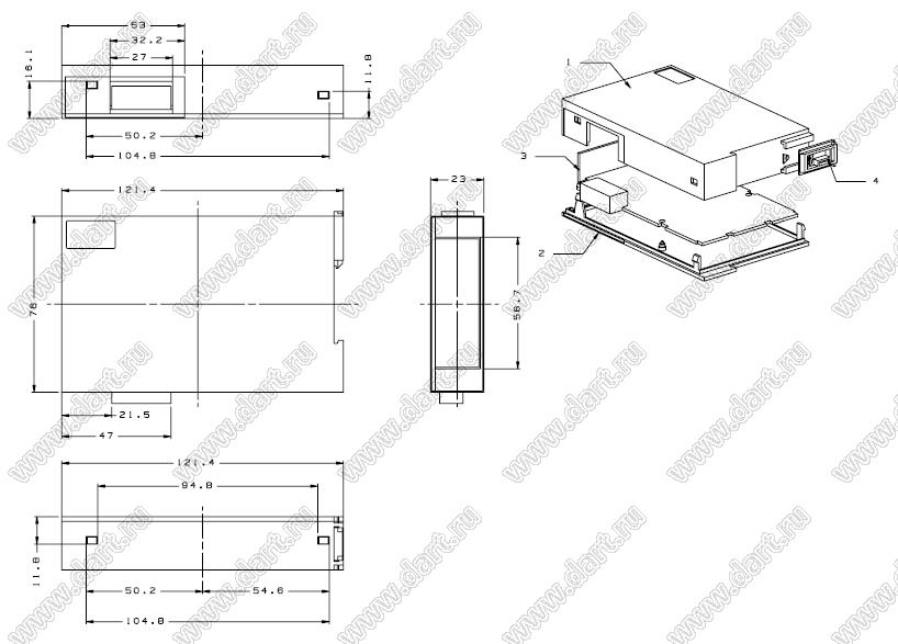 Каталог > Корпусные и установочные изделия > Корпуса для РЭА > Корпуса на DIN-рейку (стандартный электрический рельс) (Case 23-хх) > Case 23-122