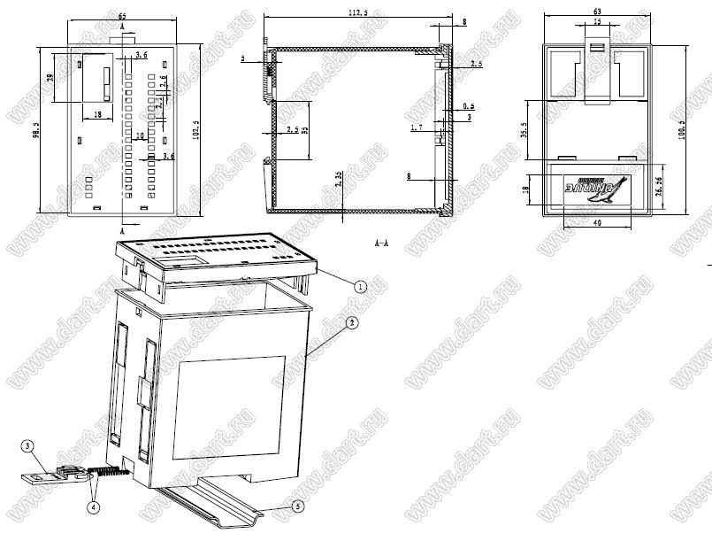 Каталог > Корпусные и установочные изделия > Корпуса для РЭА > Корпуса на DIN-рейку (стандартный электрический рельс) (Case 23-хх) > Case 23-129