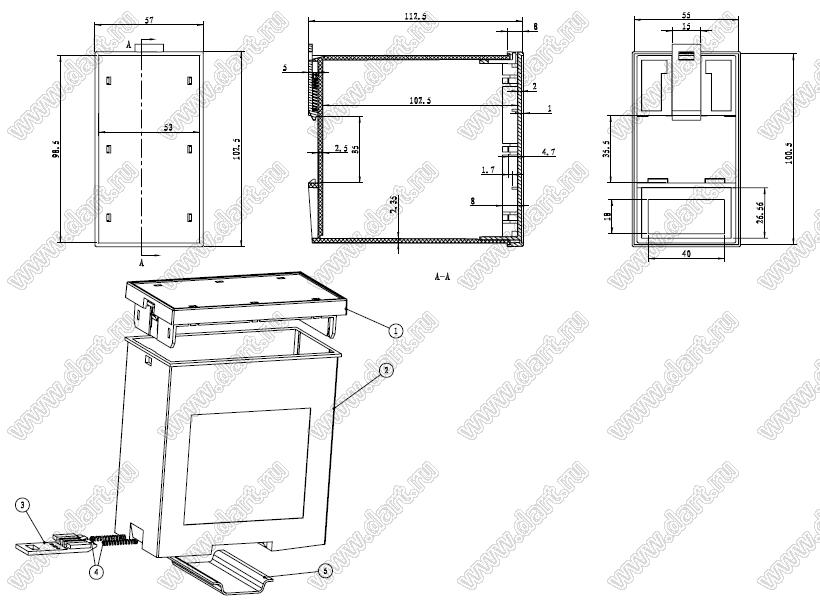 Каталог > Корпусные и установочные изделия > Корпуса для РЭА > Корпуса на DIN-рейку (стандартный электрический рельс) (Case 23-хх) > Case 23-134