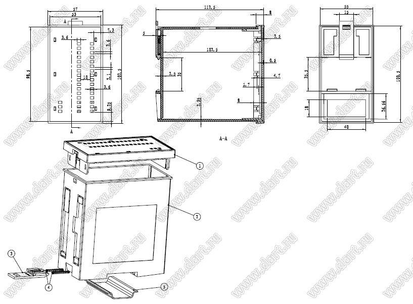 Каталог > Корпусные и установочные изделия > Корпуса для РЭА > Корпуса на DIN-рейку (стандартный электрический рельс) (Case 23-хх) > Case 23-134A